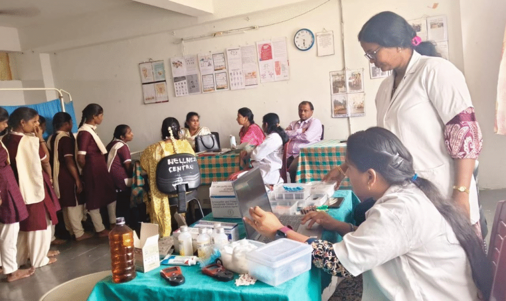 Health authorities conducted comprehensive medical screening for students at Telangana Social Welfare Women’s Gurukul College in Shamirpet on Monday. The camp was led by Dr. Bhagyalakshmi, where students were examined for various health conditions.
