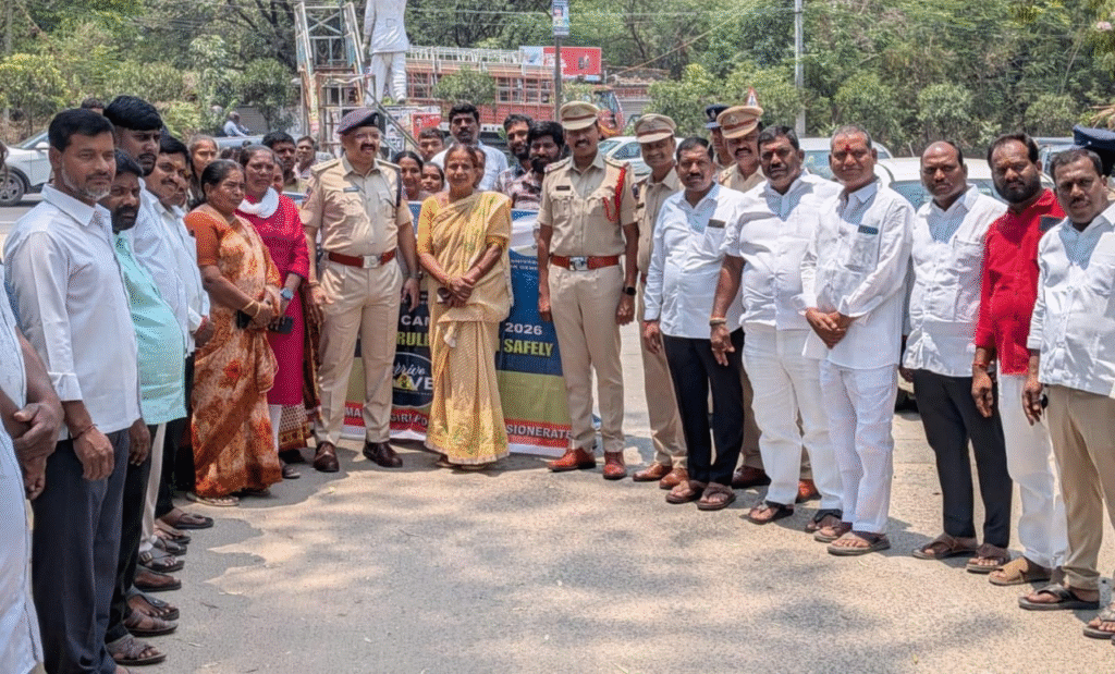 A road safety awareness meeting was held on Monday in Shamirpet and Thumkunta villages under the ‘Arrive Alive’ initiative within Shamirpet police station limits. Jawahar Nagar ACP Chakrapani addressed the gathering.