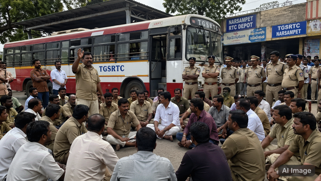 TGSRTC Driver Attempts Self-Immolation During Protest in Narsampet, Warangal District
