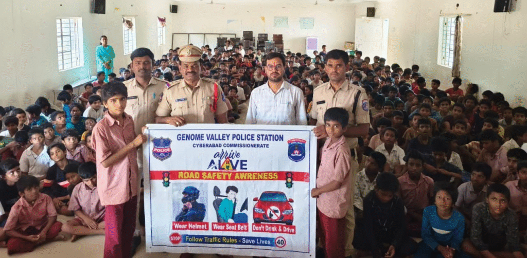 A road safety awareness programme was conducted on Saturday at Mahatma Jyotiba Phule BC Welfare School in Turkapally village under Aliabad municipal limits of Shamirpet mandal. Genome Valley Police Inspector G. Guruvayya attended as the chief guest and educated students on traffic safety rules.