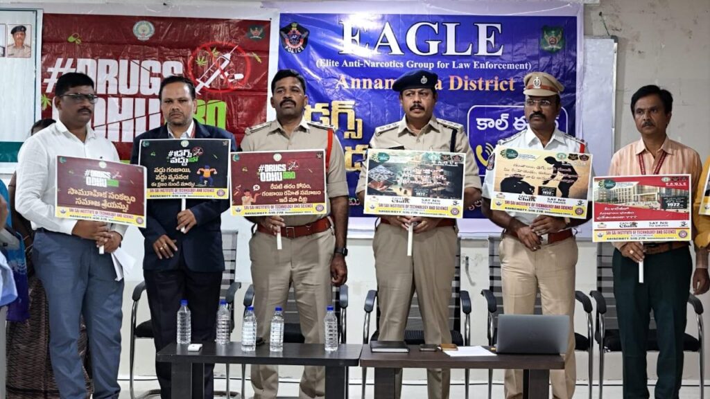 Annamayya district police urged youth to stay away from drugs and contribute to national development. At Sri Sai Institute of Technology and Science, Rayachoti, an anti-drug awareness program under “Eagle Cell” was conducted, with students pledging to stay drug-free.