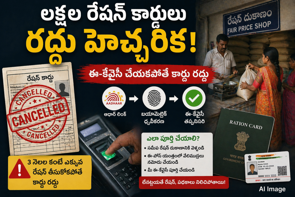 ఈ క్రమంలో ప్రతి రేషన్ కార్డుదారుడు తమ ఆధార్ను రేషన్ కార్డుతో అనుసంధానం చేసి ఈ-కేవైసీ ప్రక్రియ పూర్తి చేయాలని ఆదేశాలు జారీ అయ్యాయి. వేలిముద్రల ద్వారా బయోమెట్రిక్ ధృవీకరణ తప్పనిసరిగా పూర్తి చేయాల్సి ఉంటుంది.