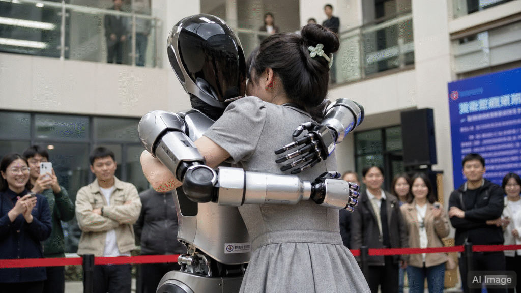 The incident took place during a dance performance at a university in Shaanxi province, China, where a humanoid robot was participating alongside students as part of a campus cultural program. During the live performance, the robot suddenly moved closer to a female student and tightly hugged her, surprising the audience.