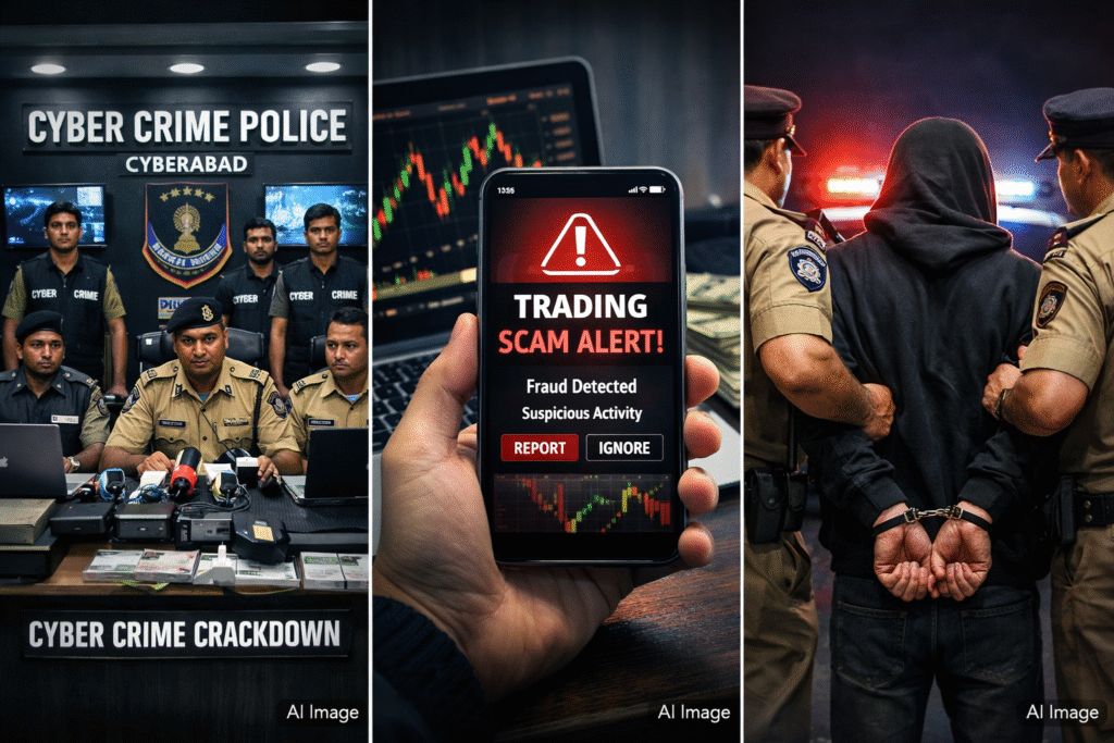 Cyberabad Police stated that stringent action against cyber criminals is continuing. Between February 20 and 26, eight major cases were solved and 11 accused operating across multiple states were arrested. Of them, nine were linked to trading frauds and two to loan scams.