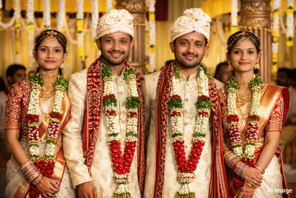 The incident involves twin brothers Vijay and Vinay Kumar from Ghanpur village in Machareddy mandal, who got married in February to twin sisters Keerthana and Keerthi from Demiklan. Their wedding had gained attention on social media. Recently, Vinay returned to his native village along with his wife for Ugadi.