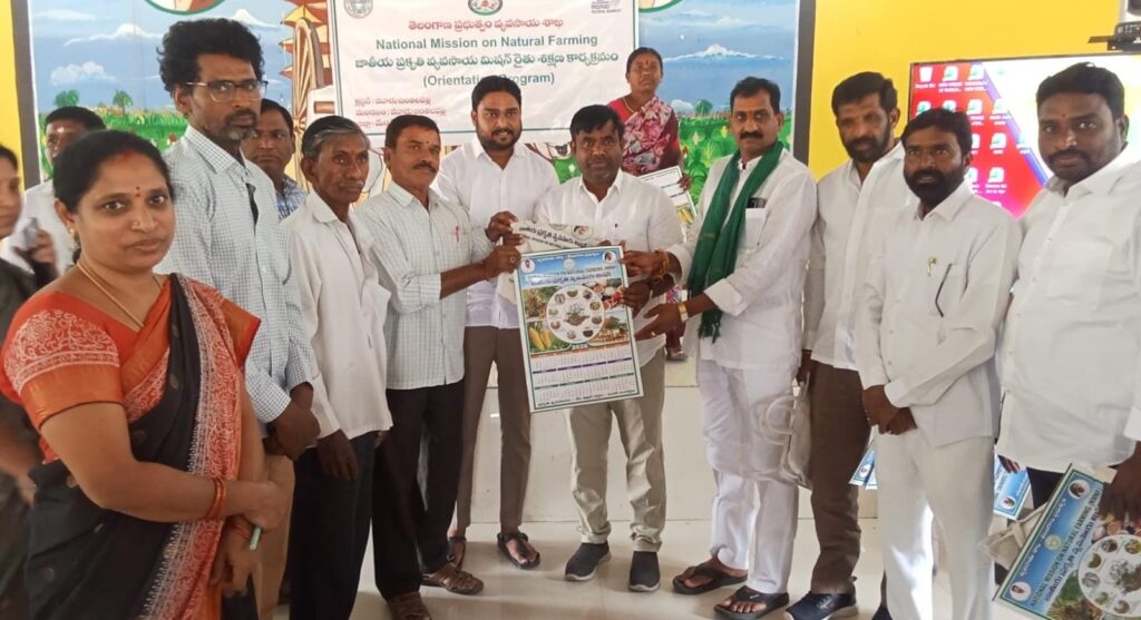 On the occasion, organic farming calendars and diaries were distributed to farmers by Medchal Market Committee Chairman Narsimlu Yadav and Muduchintalapally Municipal Chairman Jam Ravi. Several officials, public representatives, and farmers participated in the program