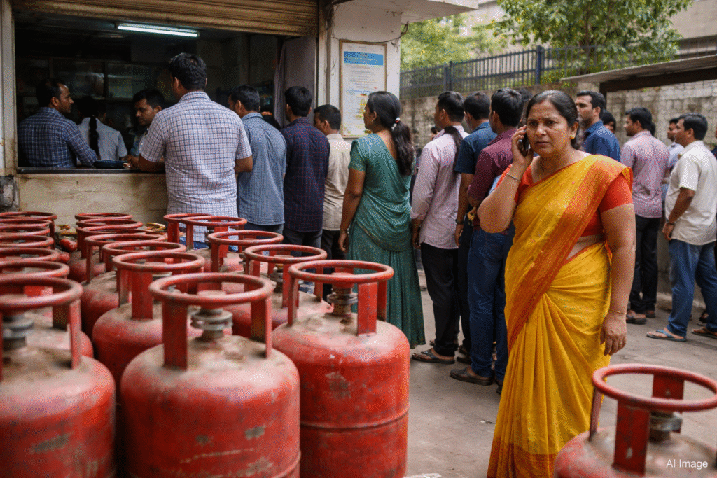 Due to geopolitical tensions in West Asia, LPG supply has been disrupted across the country. As a result, shortages are being reported in several parts of Telangana, forcing consumers to wait near gas godowns for cylinders.