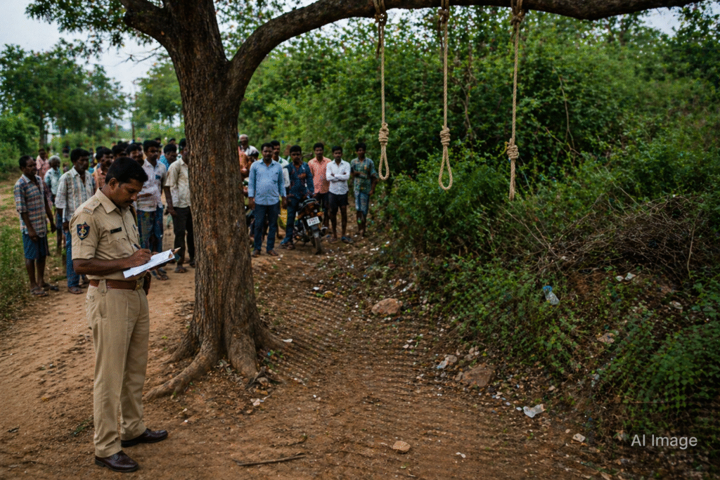 He reportedly took them to an isolated area near the Torrur Agricultural Market Committee. There, he allegedly hanged both children and later died by suicide by hanging himself.