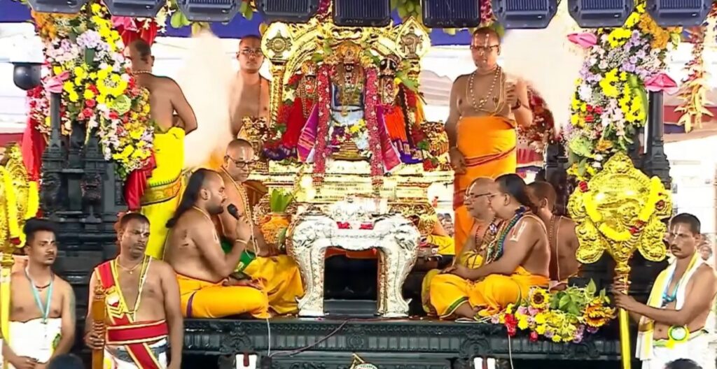 As per long-standing tradition, the state government officially participates in the temple rituals every year. Continuing this practice, the Chief Minister presented silk clothes and sacred offerings (Talambralu) to the deity on behalf of the government.
