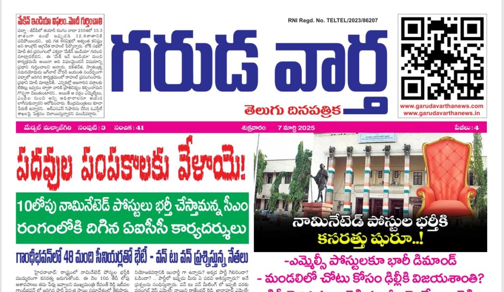 E NEWS PAPER 8th MARCH 2025 GARUDA VARTHA PUBLISHED & PRINTED IN TELUGU LANGUAGE FROM TELANGANA STATE