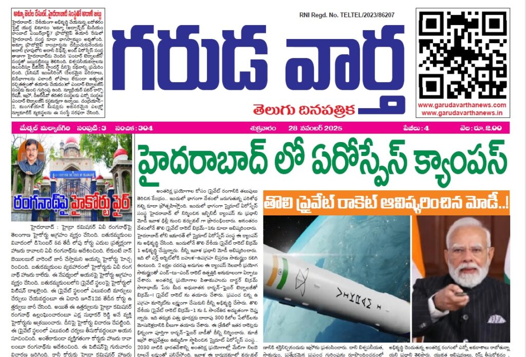 EE NEWS PAPER 29TH NOVEMBER 2025 GARUDA VARTHA PUBLISHED & PRINTED IN TELUGU LANGUAGE FROM TELANGANA STATE –