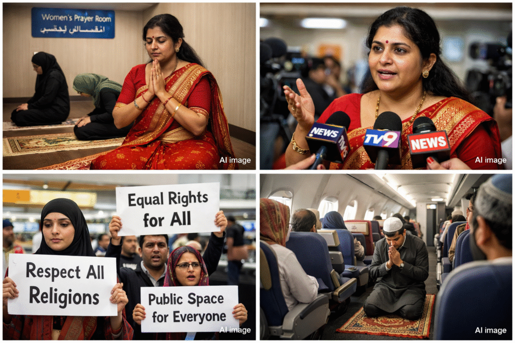 A controversy erupted over an incident at Delhi airport’s women’s prayer room, with Madhavi Latha asserting that public prayer spaces are open to all.