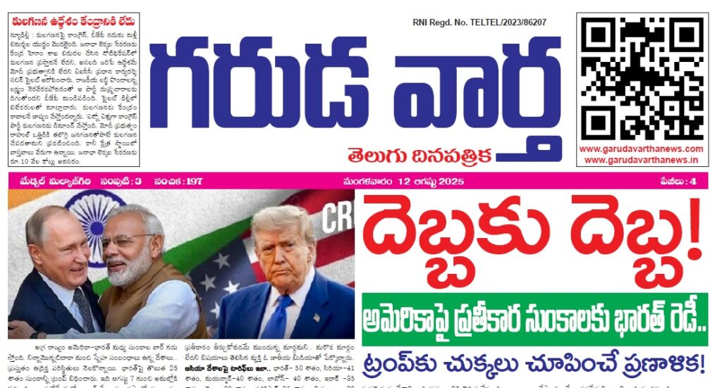 • E NEWS PAPER 12TH AUGUST 2025 GARUDA VARTHA PUBLISHED & PRINTED IN TELUGU LANGUAGE FROM TELANGANA STATE –