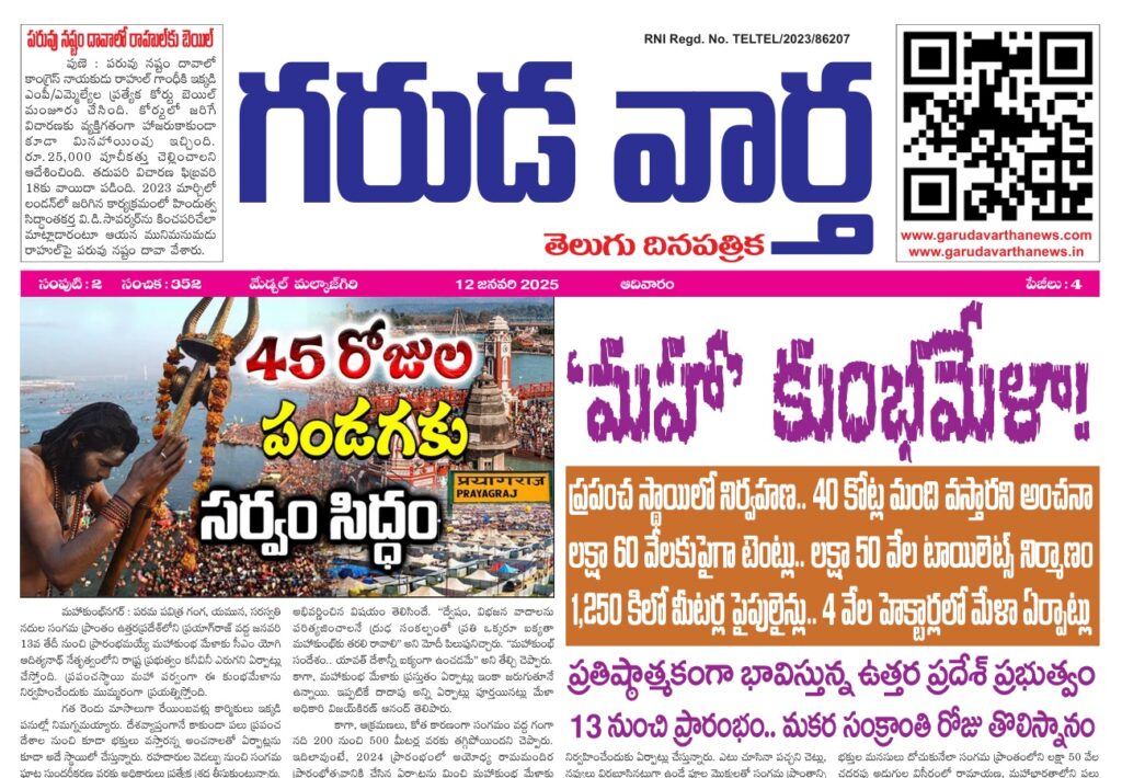 E NEWS PAPER 12th JANUARY 2025 GARUDA VARTHA PUBLISHED & PRINTED IN TELUGU LANGUAGE FROM TELANGANA STATE