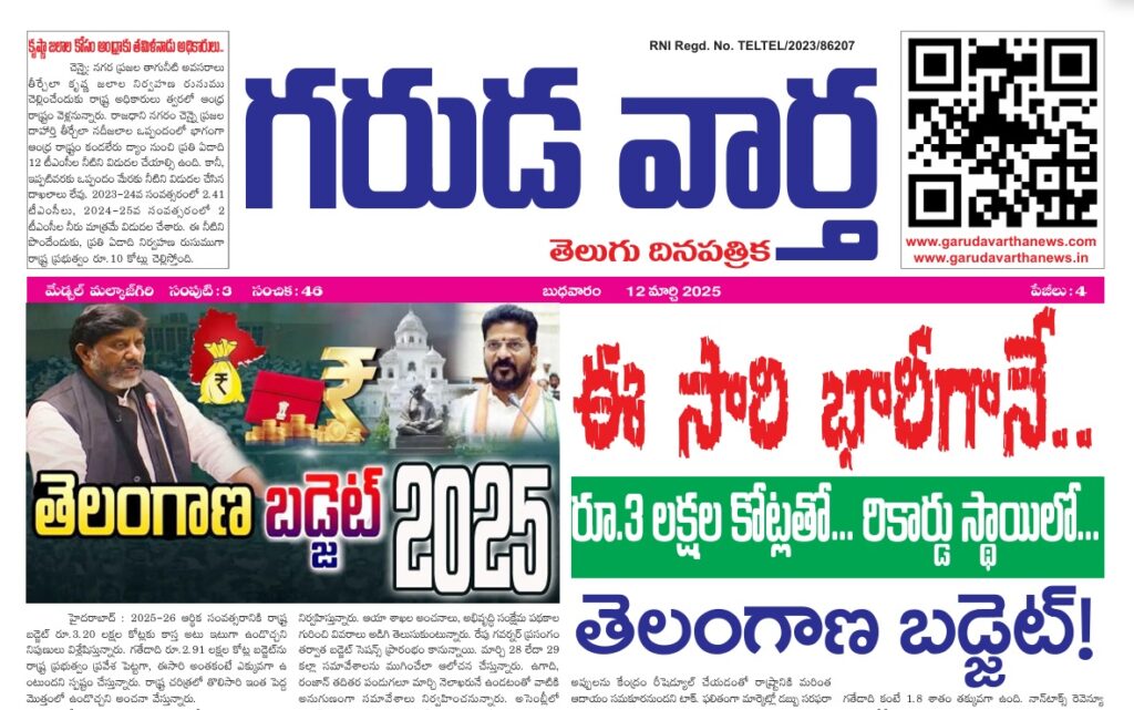 E NEWS PAPER 12th MARCH 2025 GARUDA VARTHA PUBLISHED & PRINTED IN TELUGU LANGUAGE FROM TELANGANA STATE