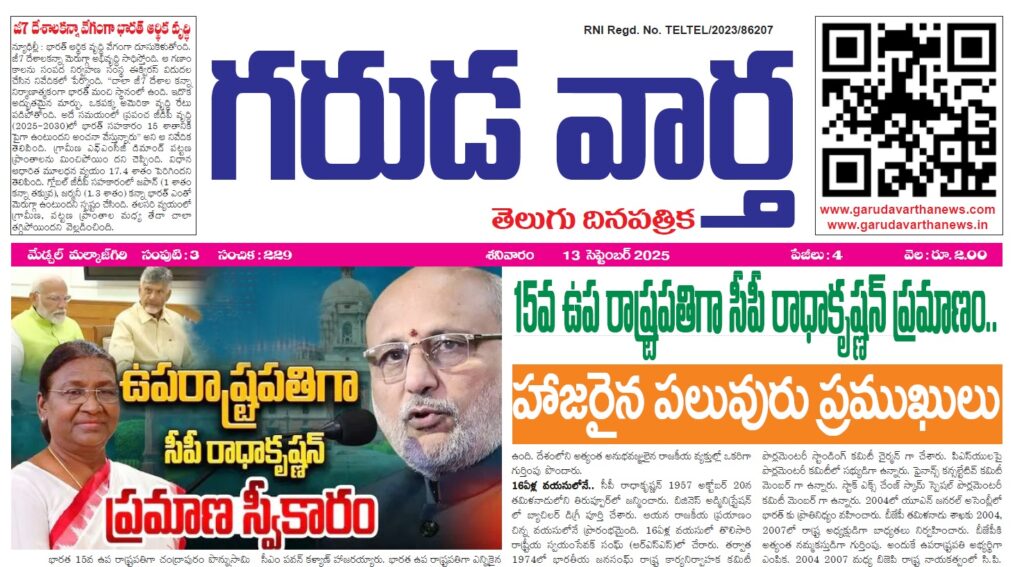 E NEWS PAPER 13TH SEPTEMBER 2025 GARUDA VARTHA PUBLISHED & PRINTED IN TELUGU LANGUAGE FROM TELANGANA STATE –
