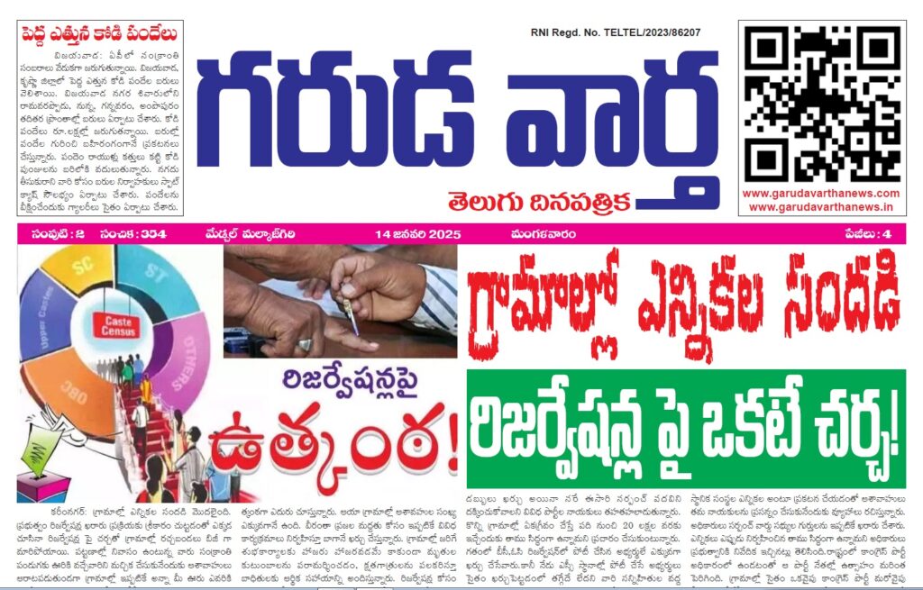 E NEWS PAPER 14th JANUARY 2025 GARUDA VARTHA PUBLISHED & PRINTED IN TELUGU LANGUAGE FROM TELANGANA STATE