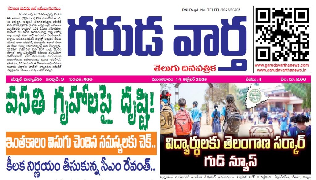 • E NEWS PAPER 14TH OCTOMBER 2025 GARUDA VARTHA PUBLISHED & PRINTED IN TELUGU LANGUAGE FROM TELANGANA STATE –