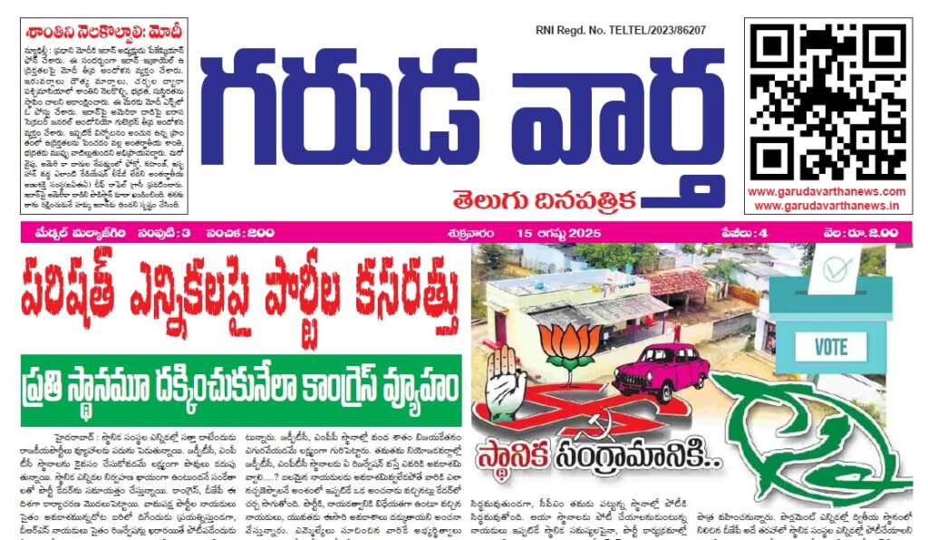 • E NEWS PAPER 15TH AUGUST 2025 GARUDA VARTHA PUBLISHED & PRINTED IN TELUGU LANGUAGE FROM TELANGANA STATE –