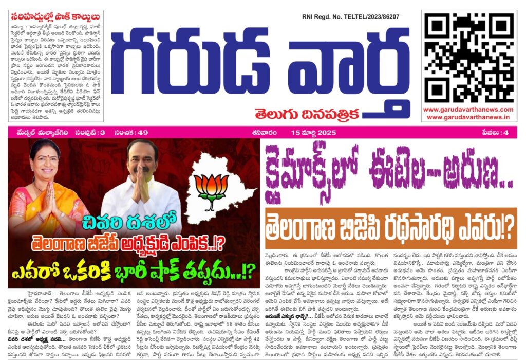E NEWS PAPER 15th MARCH 2025 GARUDA VARTHA PUBLISHED & PRINTED IN TELUGU LANGUAGE FROM TELANGANA STATE