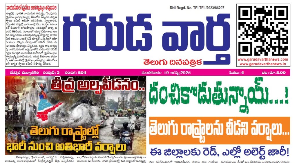 • E NEWS PAPER 19TH AUGUST 2025 GARUDA VARTHA PUBLISHED & PRINTED IN TELUGU LANGUAGE FROM TELANGANA STATE –