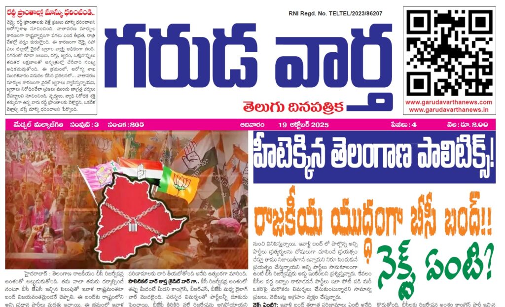 E NEWS PAPER 19TH OCTOMBER 2025 GARUDA VARTHA PUBLISHED & PRINTED IN TELUGU LANGUAGE FROM TELANGANA STATE –