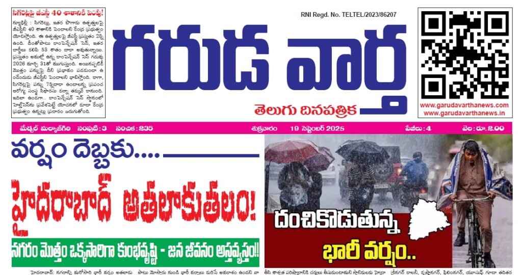 E NEWS PAPER 19TH SEPTEMBER 2025 GARUDA VARTHA PUBLISHED & PRINTED IN TELUGU LANGUAGE FROM TELANGANA STATE –
