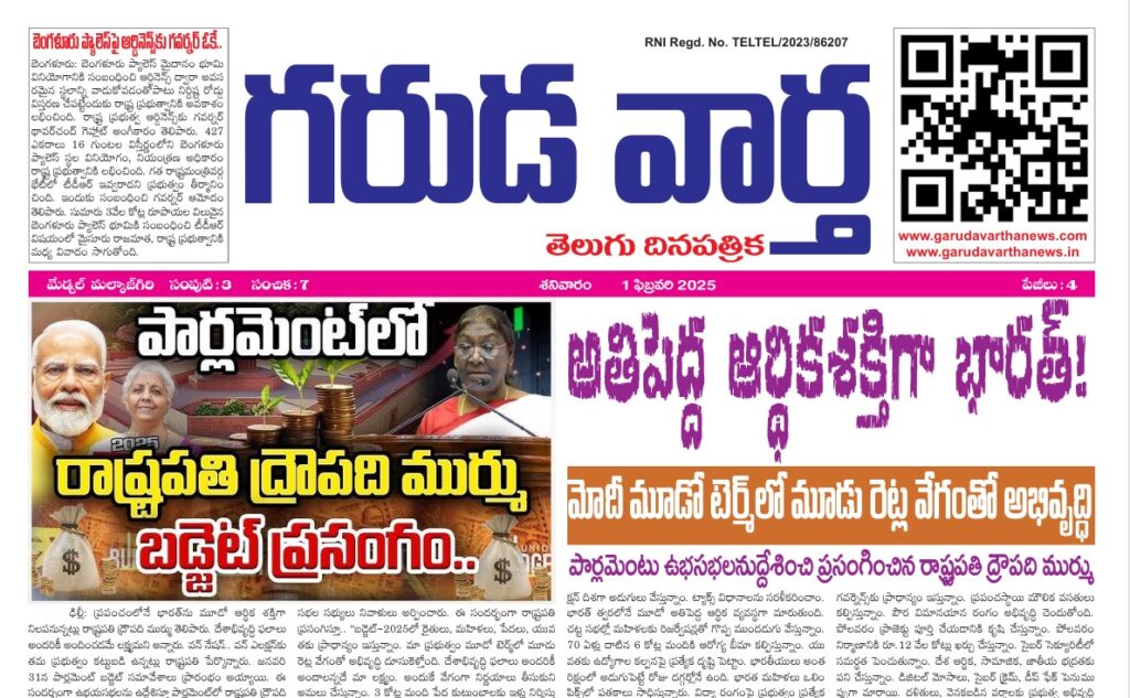 E NEWS PAPER 1ST FEBRAURY 2025 GARUDA VARTHA PUBLISHED & PRINTED IN TELUGU LANGUAGE FROM TELANGANA STATE