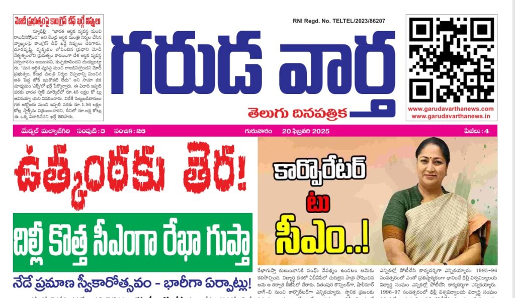 E NEWS PAPER 20th FEBRAURY 2025 GARUDA VARTHA PUBLISHED & PRINTED IN TELUGU LANGUAGE FROM TELANGANA STATE