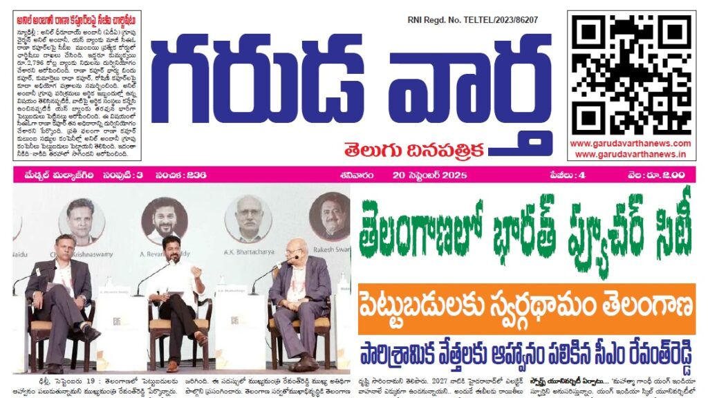 E NEWS PAPER 20TH SEPTEMBER 2025 GARUDA VARTHA PUBLISHED & PRINTED IN TELUGU LANGUAGE FROM TELANGANA STATE –