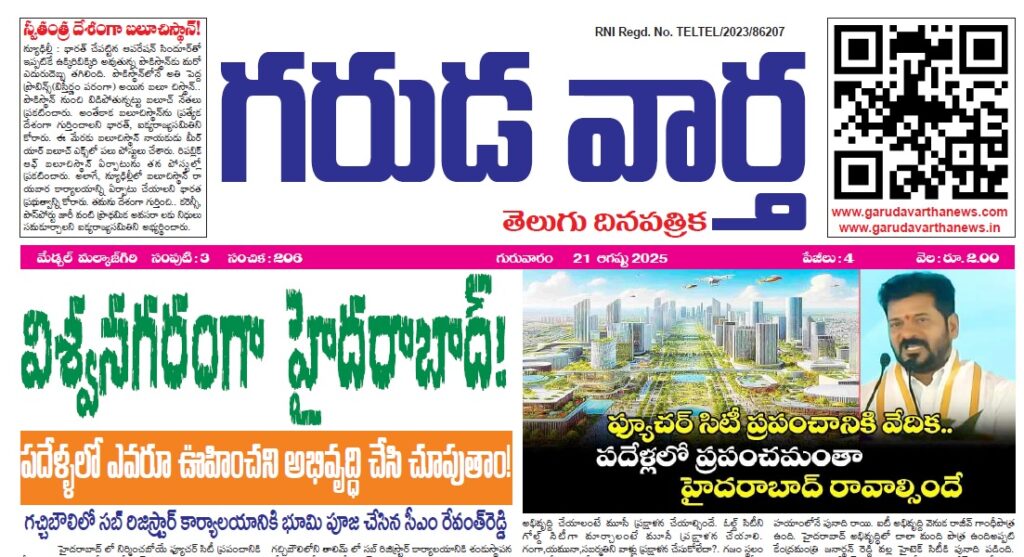 E NEWS PAPER 21ST AUGUST 2025 GARUDA VARTHA PUBLISHED & PRINTED IN TELUGU LANGUAGE FROM TELANGANA STATE –