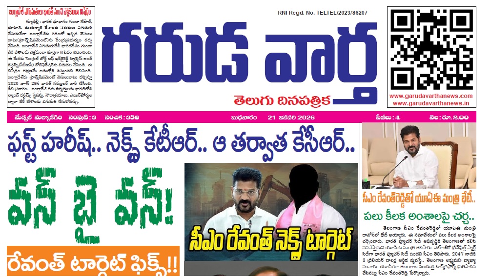 E NEWS PAPER 21ST JANUARY 2026 GARUDA VARTHA PUBLISHED & PRINTED IN TELUGU LANGUAGE FROM TELANGANA STATE –