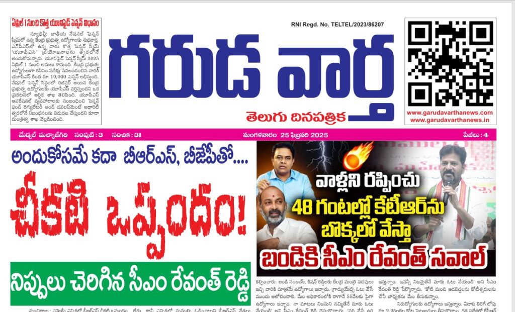 E NEWS PAPER 25th FEBRAURY 2025 GARUDA VARTHA PUBLISHED & PRINTED IN TELUGU LANGUAGE FROM TELANGANA STATE