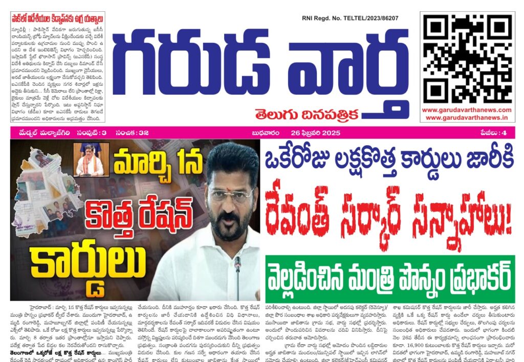 E NEWS PAPER 26th FEBRAURY 2025 GARUDA VARTHA PUBLISHED & PRINTED IN TELUGU LANGUAGE FROM TELANGANA STATE