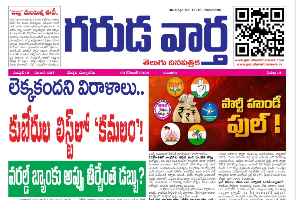 E NEWS PAPER 28 DECEMBER 2024 GARUDA VARTHA PUBLISHED & PRINTED IN TELUGU LANGUAGE FROM TELANGANA STATE