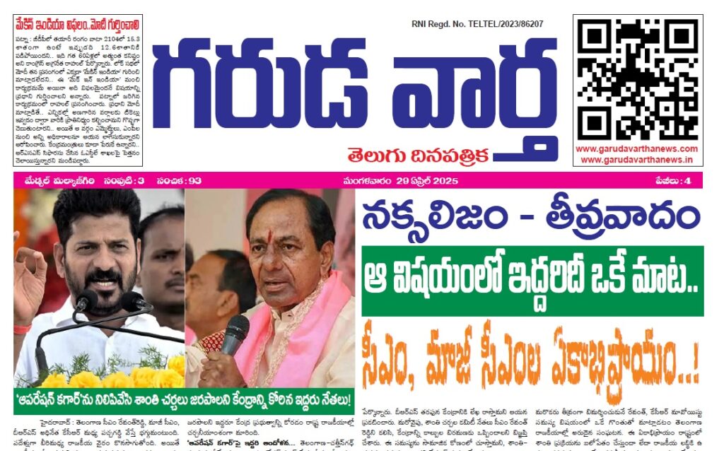 E NEWS PAPER 29th APRIL 2025 GARUDA VARTHA PUBLISHED & PRINTED IN TELUGU LANGUAGE FROM TELANGANA STATE – Copy