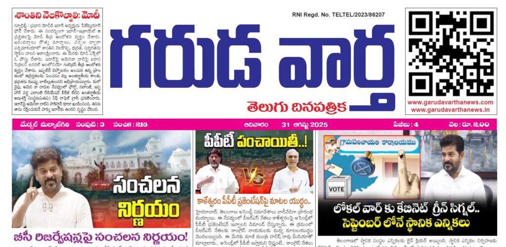 • E NEWS PAPER 31ST AUGUST 2025 GARUDA VARTHA PUBLISHED & PRINTED IN TELUGU LANGUAGE FROM TELANGANA STATE –