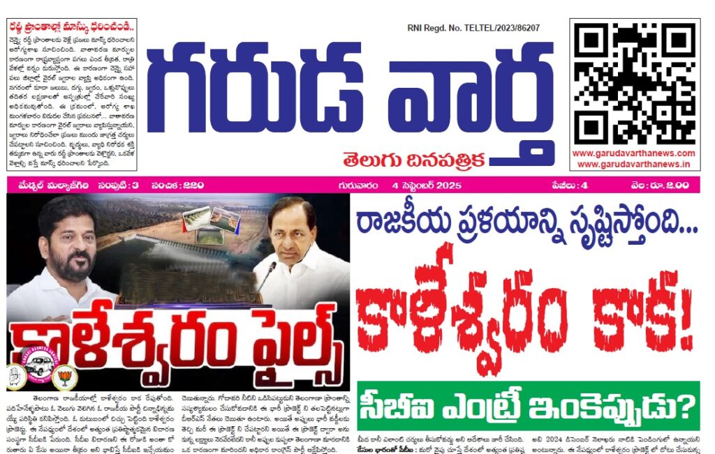 • E NEWS PAPER 4TH SEPTEMBER 2025 GARUDA VARTHA PUBLISHED & PRINTED IN TELUGU LANGUAGE FROM TELANGANA STATE –
