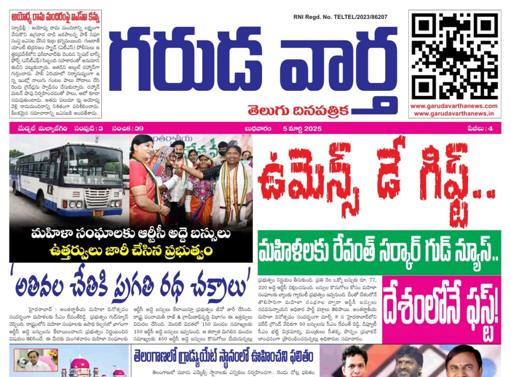 E NEWS PAPER 5th MARCH 2025 GARUDA VARTHA PUBLISHED & PRINTED IN TELUGU LANGUAGE FROM TELANGANA STATE