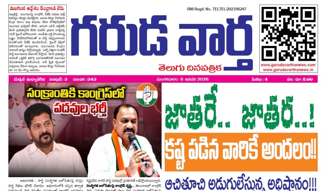 E NEWS PAPER 6TH NOVEMBER 2025 GARUDA VARTHA PUBLISHED & PRINTED IN TELUGU LANGUAGE FROM TELANGANA STATE –