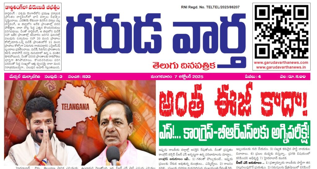 • E NEWS PAPER 7TH OCTOMBER 2025 GARUDA VARTHA PUBLISHED & PRINTED IN TELUGU LANGUAGE FROM TELANGANA STATE –