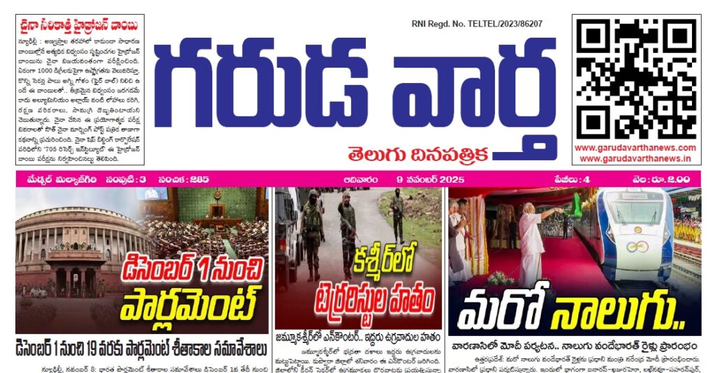 E NEWS PAPER 9TH NOVEMBER 2025 GARUDA VARTHA PUBLISHED & PRINTED IN TELUGU LANGUAGE FROM TELANGANA STATE –