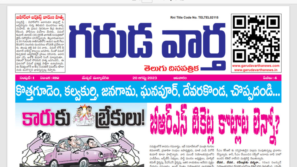 E PAPER GARUDA VARTHA IMPORTANT AND GENERAL NEWS LATEST