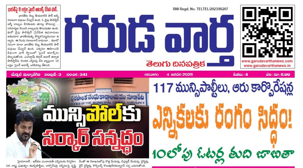 EE NEWS PAPER 4TH JANUARY 2026 GARUDA VARTHA PUBLISHED & PRINTED IN TELUGU LANGUAGE FROM TELANGANA STATE –