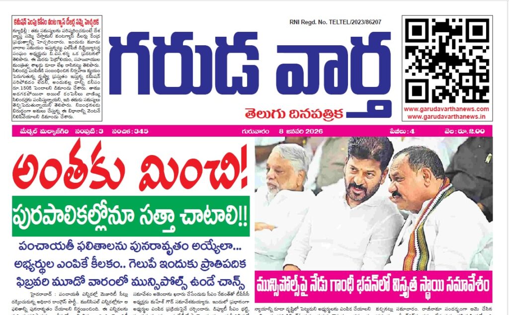 EE NEWS PAPER 8TH JANUARY 2026 GARUDA VARTHA PUBLISHED & PRINTED IN TELUGU LANGUAGE FROM TELANGANA STATE –