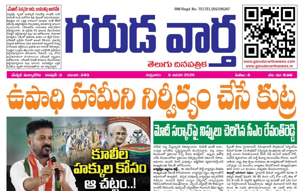 EE NEWS PAPER 9TH JANUARY 2026 GARUDA VARTHA PUBLISHED & PRINTED IN TELUGU LANGUAGE FROM TELANGANA STATE –