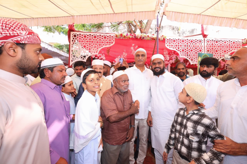 Former minister and BRS leader Harish Rao attended Ramzan celebrations in Siddipet and extended greetings to Muslims across the state.