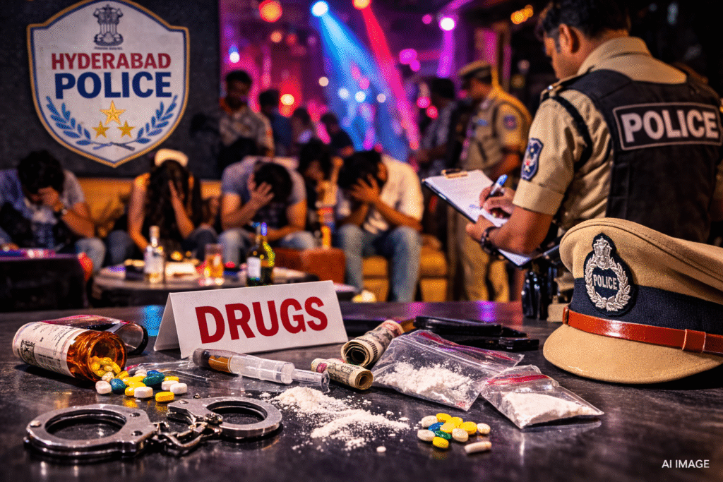 Police reportedly raided a private party near Moinabad on the outskirts of Hyderabad, with media reports suggesting that some political figures were also present.