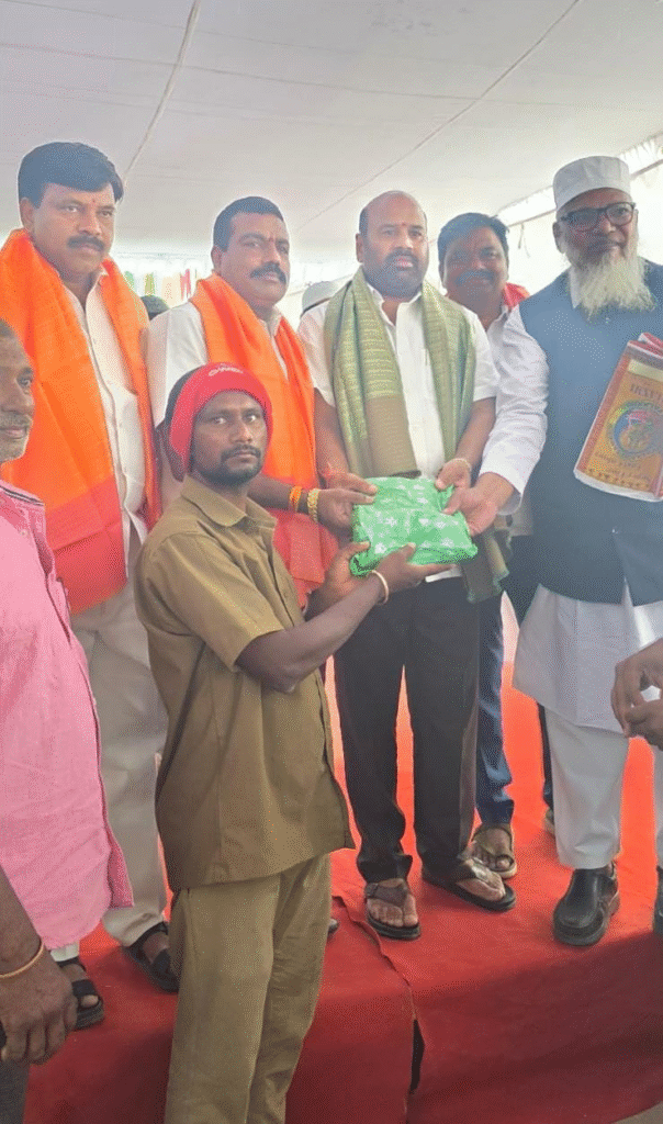 Ramzan kits and new clothes distributed to municipal workers and poor families in Thumkunta village of Shamirpet mandal under the initiative of Aksa Welfare Association.