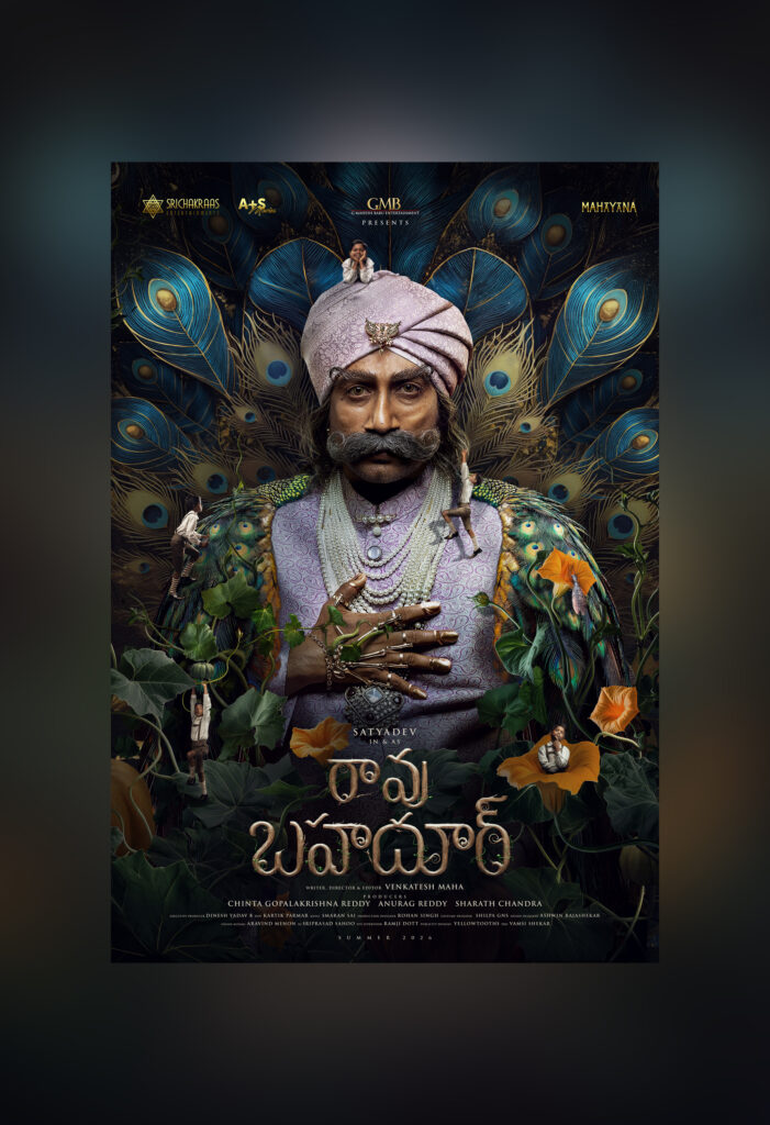 GMB ఎంటర్టైన్మెంట్ సమర్పణలో, సత్య దేవ్ హీరోగా, దర్శకుడు వెంకటేష్ మహా తెరకెక్కిస్తున్న సైకలాజికల్ డ్రామా ‘రావు బహదూర్’ మొదటి చూపు (ఫస్ట్ లుక్) విడుదలైంది. రాజవంశం నేపథ్యంలో నడిచే ఈ కథను A+S మూవీస్ మరియు శ్రీచక్రాస్ ఎంటర్టైన్మెంట్స్ నిర్మిస్తున్నాయి. ఈ చిత్రం భవ్యమైన ప్రొడక్షన్ విలువలు, ప్రపంచ స్థాయి సాంకేతిక ప్రమాణాలతో రూపొందుతోంది.